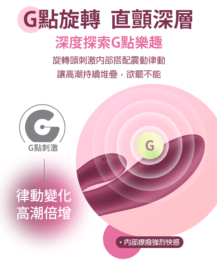 當旋轉與震動同時啟動,感受G點與C點的雙重共鳴,快感層層疊加。